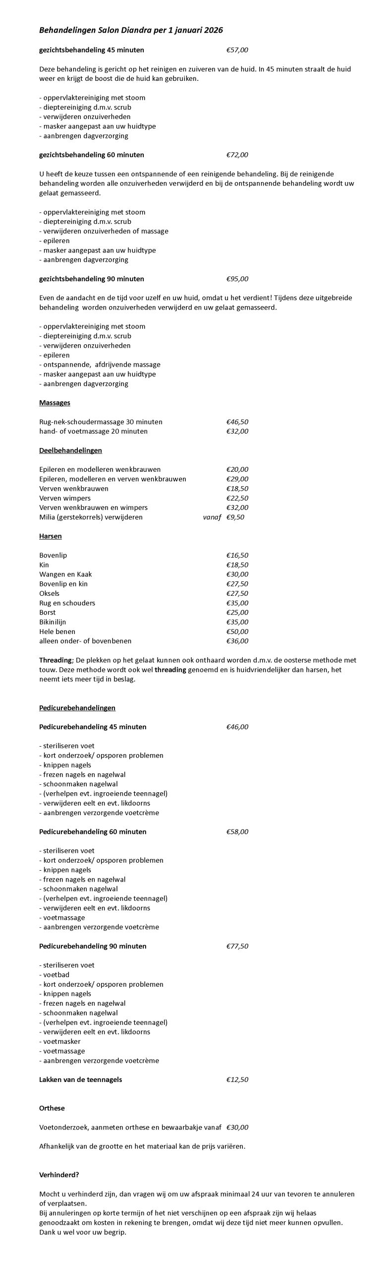 Behandelingen salon Diandra